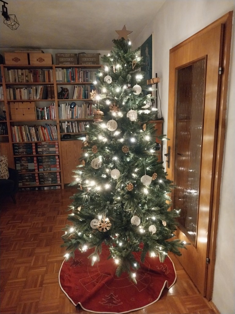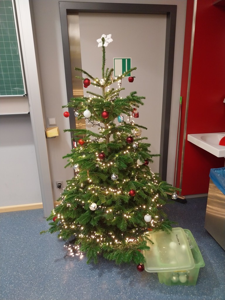 Voici les sapins de Noël : le premier c’est celui de ma famille d’accueil. Le deuxième c’est celui qu’il y a dans ma classe et ce sont les élèves de ma classe qui se sont organisés pour le ramener dans la classe, ramener les décorations et le décorer.