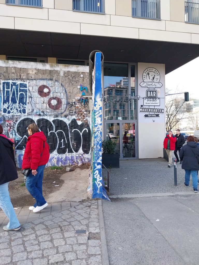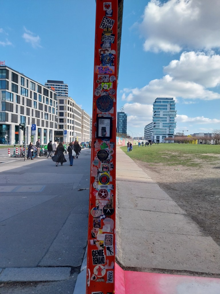 En fin de journée, nous avons été à l’East Side Gallery, c’est une galerie d’art à ciel ouvert. C’est la plus longue section continue du Mur de Berlin encore debout. Immédiatement après sa chute, 118 artistes de 21 pays commencèrent à peindre l’East Side Gallery. À peine un an plus tard, il obtient le statut de mémorial protégé.